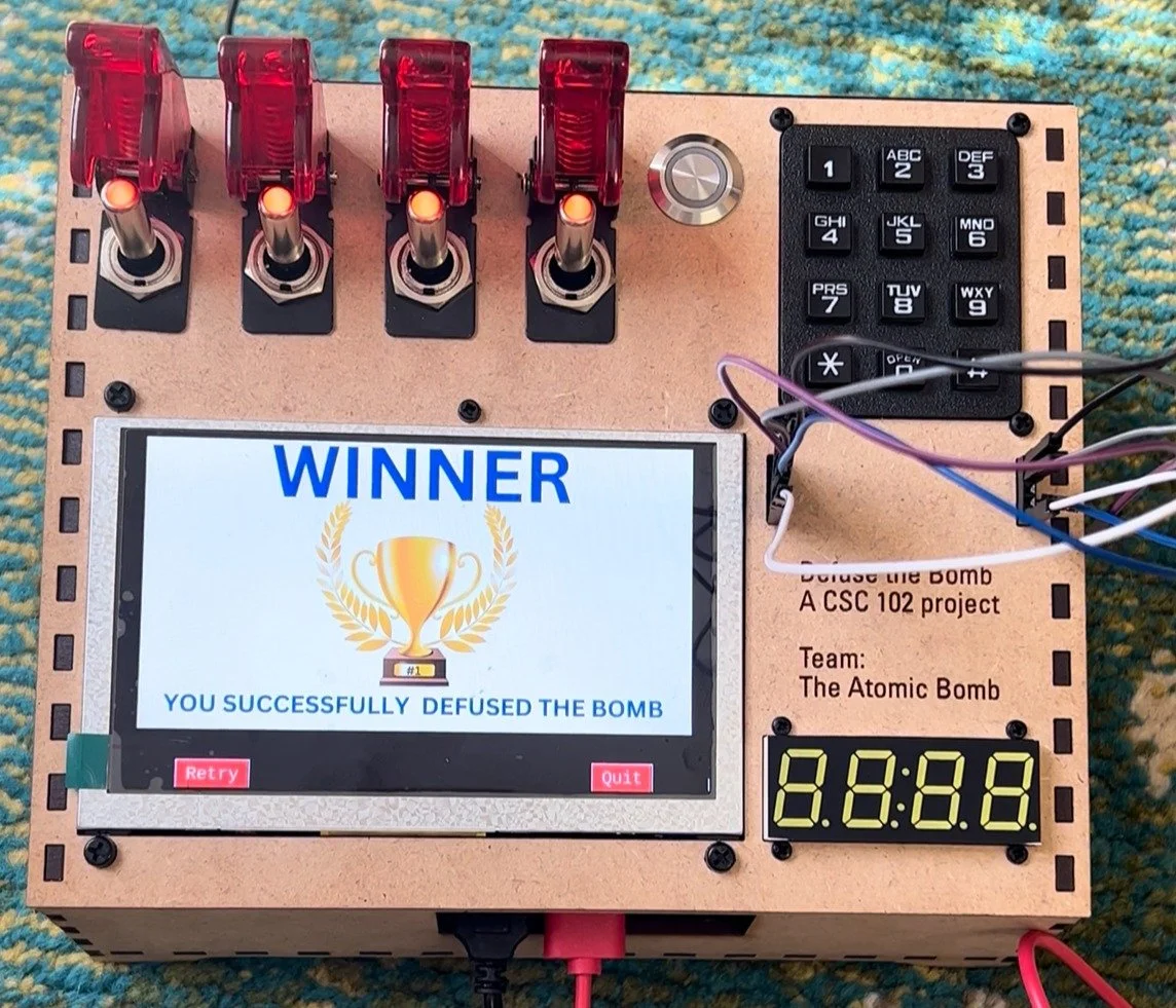 Defuse The Bomb is an interactive hardware-software hybrid game that challenges players to solve a series of puzzles under pressure. By integrating Python logic with physical components, my partner and I created a high-stakes Escape Room experience where users must decode secret instructions to disable a countdown timer before it reaches zero.
