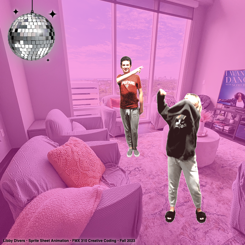 This project was a massive lesson in technical patience. Using Photoshop to build a sprite sheet from scratch, without an automated game engine, really made me understand exactly how 2D games work. The hardest part was making sure the twenty-four frames of each dance move lined up perfectly so the movement felt natural. It challenged me to bridge the gap between video production and creative coding, and I’m proud of how the interactive piece turned out.